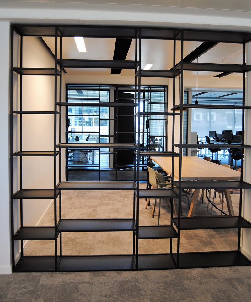 - Smeeddeuren met onderverdelingen naar keuze en gelakt in RAL-kleur naar keuze.